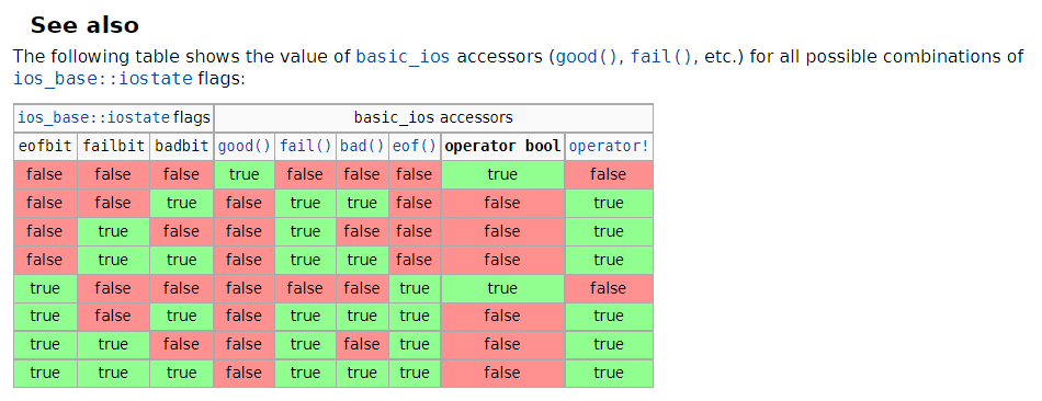 출처 : https://en.cppreference.com/w/cpp/io/basic_ios/operator_bool 여기서 주목할 부분은, eof()가 true일 때의 bool 형변환 결과이다.
